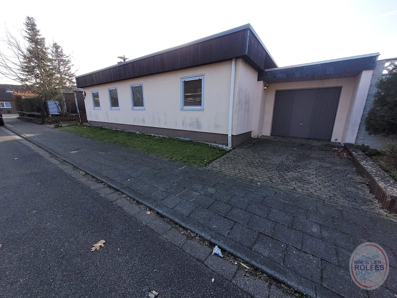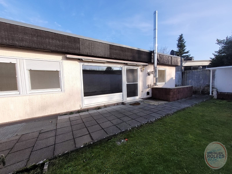 Das angebotene freistehende Einfamilienhaus wurde 1976 als Fertighaus der Firma Streif mit Flachdach auf einem 344 m² großen Grundstück mit Terrasse und kleinem pflegeleichten Ziergarten in Südwestlage errichtet. Das Haus hat einen massiv gebauten Vollkeller mit massiver Innentreppe und Außentreppe. Neben dem Haus befindet sich eine große Garage, die auch von der Terrasse aus begehbar ist.Ausstattung