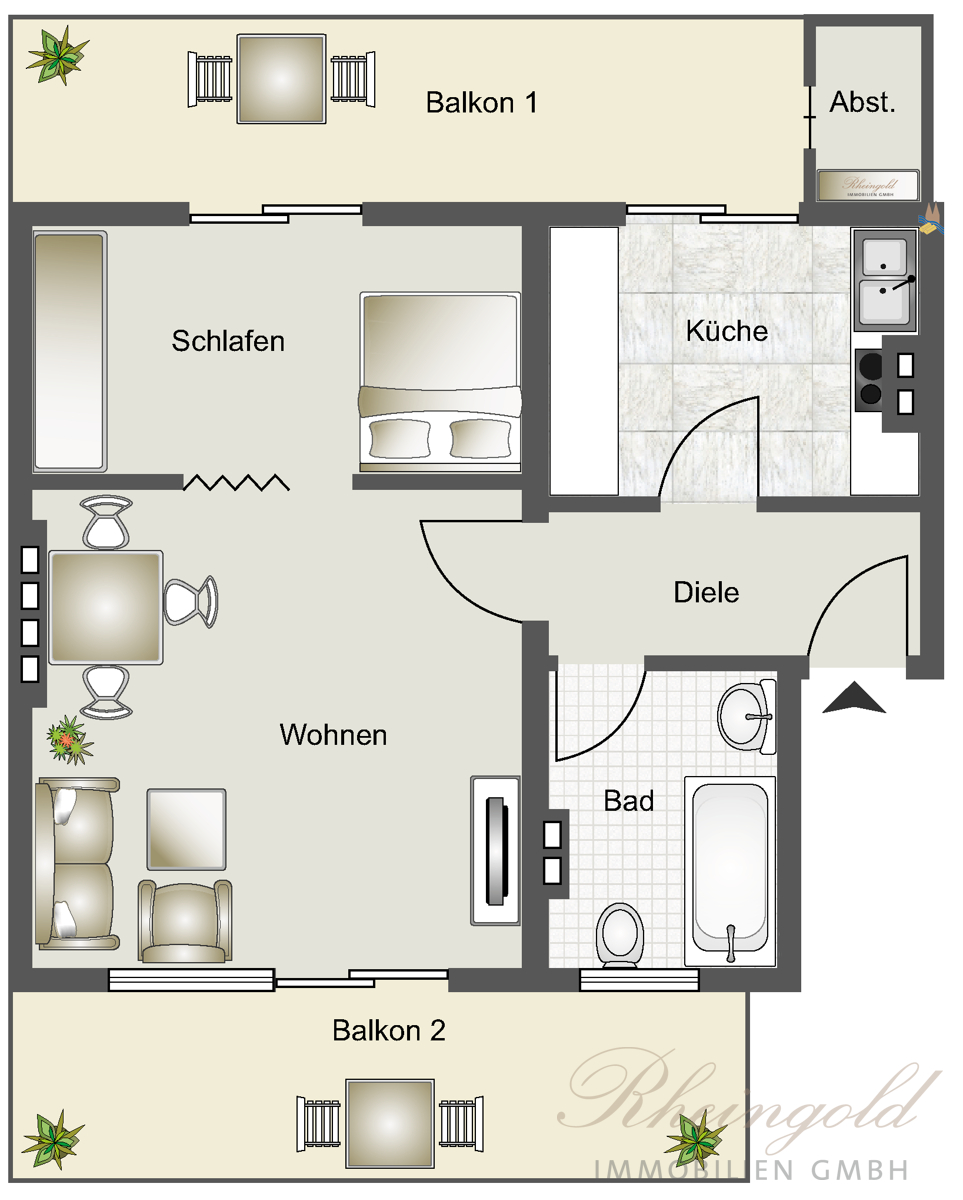 Hier lebt es sich zentral, komfortabel und ruhig. Im Dachgeschoss eines 3- stöckigen Mehrfamilienhauses gelegen, befindet sich diese Wohnung mit weitläufigem Ausblick ins Grüne. Die Wohnung ermöglicht den Bewohnern ein modernes Großstadtleben. Die Aufteilung ist ein Traum für Singles. Auf rund 48 m2 wurde kein Platz verschenkt und alles für ein angenehmes Singledasein aufbereitet: Eine kleine Wohnküche, wo eine neue Einbauküche eingebaut wurde, ein Schlafzimmer, indem ein Schrank und ein Bett ausreichend Platz haben. Dazu das Wohnzimmer als größter Raum, sodass man hier bei Bedarf auch einen Arbeitsbereich abtrennen könnte. Neben diesen Räumen steht Ihnen ein Tageslichtbad zur Verfügung. Zwei Balkone erweitern zur warmen Jahreszeit den Wohnraum nach draussen. Ob zum Innenhof oder mit Blick auf Melaten. Im April dieses Jahres wurde die komplette Modernisierung der Wohnung abgeschlossen. Es erwarten Sie eine zeitgemäße Elektrik, neue Fussböden, ein modernisiertes Badezimmer, Fussbodenheizung und zusätzlich zwei Klimageräte. Das zusätzliche Plus: Der Gartenbereich ist Gemeinschaftseigentum. Im Keller steht zudem ein Waschraum zur Verfügung. Abgerundet wird die Wohnung durch einen eigenen Kellerraum. Da kein Mietverhältnis besteht, wird die Wohnung kurzfristig bezugsfrei.Ausstattung