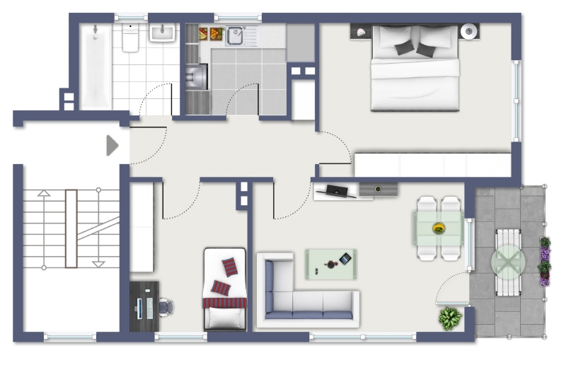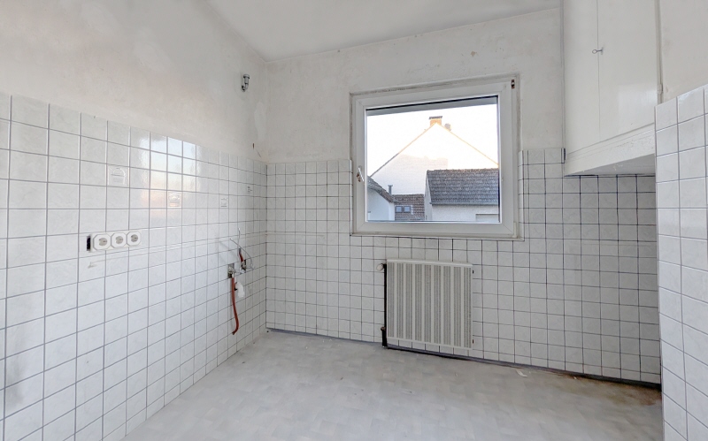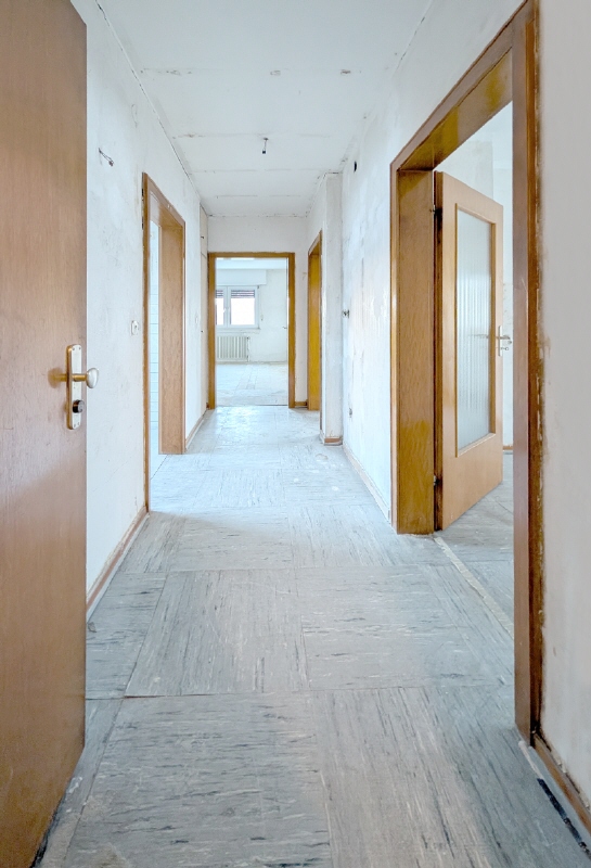 Die Eigentumswohnung befindet sich im ersten Obergeschoss eines Anfang der 60er Jahre errichteten, kleinen Mehrfamilienhauses und teilt ca. 63m² Wohnfläche auf drei gut geschnittene Räume auf. Zwar ist das Haus an sich sehr gepflegt und wurde auch in der Vergangenheit mit Maßnahmen wie dem Austausch von Fenstern und der Hauseingangstüre, sowie der Dämmung der Fassade instandgehalten. Jedoch befindet sich die Wohnung selber noch größtenteils im Ursprungszustand, sodass eine umfangreiche Modernisierung notwendig ist. Das Wohn- und Esszimmer hält neben Platz für Wohnmöbel und einen Esstisch vor allem Zugang zum Balkon bereit, der zur Gartenseite ausgerichtet ist. Neben dem großen Schlafzimmer, steht ein weiterer Raum – z.B.als Kinderzimmer oder Home-Office – bereit. Das Tageslichtad sowie die große Küche komplettieren die Wohnung. Besonderes Highlight ist das Sondernutzungsrecht an einem Anteil des rückwärtigen Gartens, den Sie exklusiv alleinig nutzen können. Für Lagerfläche steht ein Abstellraum im Keller bereit. Ihre Waschmaschine findet im Waschraum des Hauses Platz. Für Ihren PKW steht eine Garage direkt am Haus (bzw. auf Kellerniveau) bereit. INFO: Da die Immobilie durch die Eigentümergemeinschaft eigenständig verwaltet wird, erfolgt die Verrechnung der Betriebskosten (außerhalb der Heizkosten, welche vom jeweiligen Bewohner über separate Versorger bzw. Abrechnungsdienste angemeldet und separat abgerechnet werden) innerhalb der Eigentümergemeinschaft. Jährliche Versammlungen werden aktuell nicht abgehalten und eine Instandhaltungsrücklage wird derzeit nicht gebildet.Ausstattung