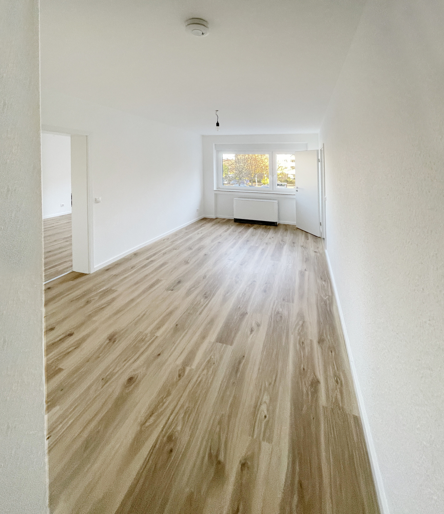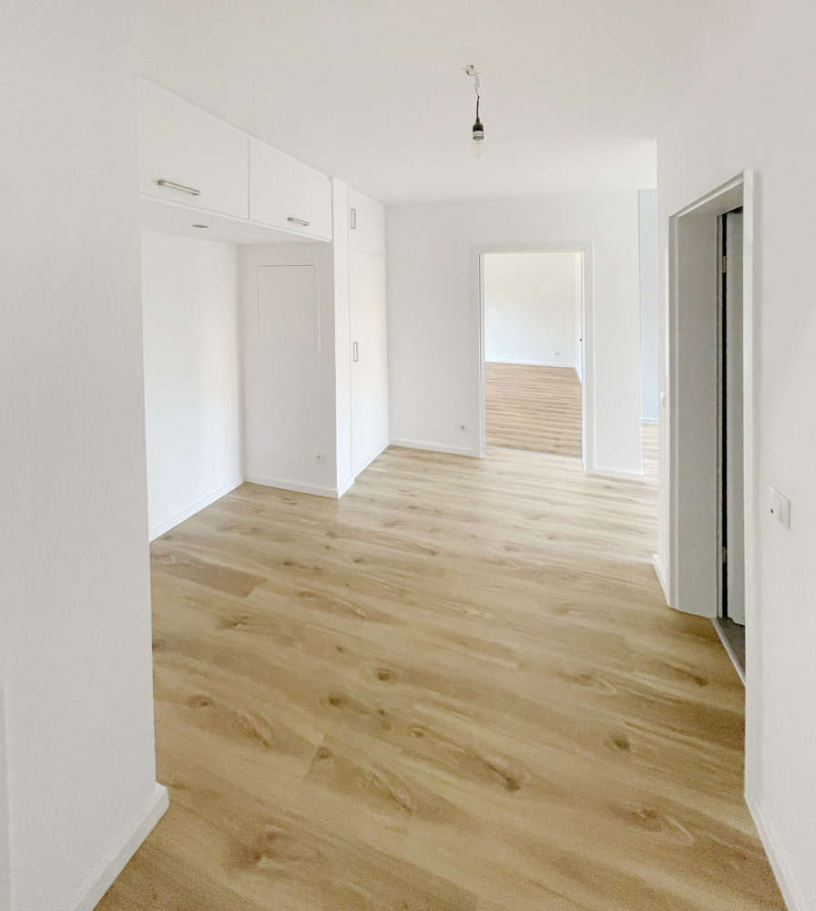 Ihre „Quality Time“ beginnt genau jetzt…, sie müssen nur noch einziehen und sich rundum wohlfühlen. Moderner, urbaner Wohnkomfort und klare Linien erwartet Sie hier in der frisch sanierten 3,5-Zimmerwohnung mit ca. 84 m² Wohnfläche. Für das innenliegende Gäste-WC und Duschbad wurden Fliesen in Betonoptik gewählt sowie mit Badmöbeln und Einbauspots ausgestattet. Die große Dusche bietet mit niedrigem Einstieg komfortablen Zugang. Eine feststehende Glastrennwand dient als Spritzschutz. Der elektrische Handtuchhalter sorgt sowohl im Winter und wenn nötig auch Sommer für wohlige Wärme. Durch den charmanten Schnitt der Wohnung ist der Essbereich separiert an die Küche angeschlossen und vom Wohnzimmer getrennt. Die Küche ist ebenfalls mit grauen Fliesen in Betonoptik versehen und hat eine praktische Speisekammer, in dem Vorräte und Alltagsgegenstände Platz finden. Vom großen Wohnzimmer aus haben Sie Zugang zum nach Westen ausgerichteten Balkon mit Abendsonne. Auch hier können Sie es sich so richtig gemütlich machen. Das Elternschlafzimmer und das Kinderzimmer bieten jeweils genug Platz für Ihre Möbel. Im Flur wurde praktischerweise ein Einbauschrank integriert, der viel Stauraum bietet. Zur Wohnung gehört ein Kellerraum im Untergeschoß, ein Gemeinschaftsfahrradkeller sowie ein PKW-Stellplatz in der hauseigenen Tiefgarage. Die Elektrik in der Küche wurde erweitert und mit einem FI-Schalter ergänzt, alle Fenster haben manuelle Rollladen, ein Durchlauferhitzer sorgt für warmes Wasser. In allen Wohnräumen, inklusive des Flurs, wurde durchgängig ein Vinylfußboden verlegt. Die Wohnungseingangstür und alle Zimmertüren wurden erneuert.Ausstattung